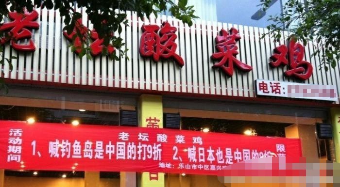 各地接二连三的“爱国”、“反日”、“保钓”活动,让许多商家看到了商机,许多商家纷纷推出喊口号打折促销活动,有的甚至直接用“钓鱼岛”冠名。但同时,也有一些商家为了避免民众的过激行为,也打“爱国牌”以保正常营业