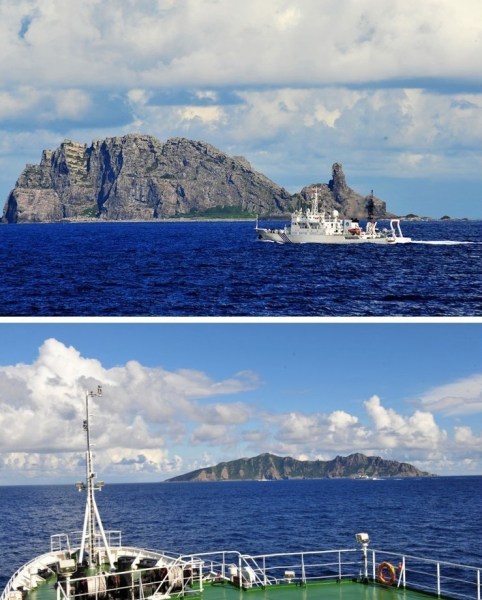 中国海监船抵近钓鱼岛 日方舰船严密监控