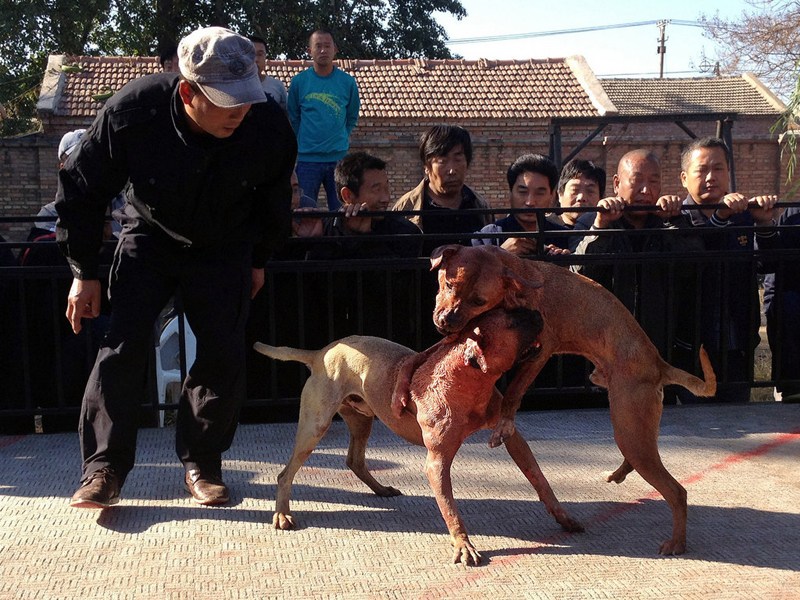 根据圈内规则,斗狗分为“定场”和“碰场”,所谓“定场”,是指专业斗狗人约好日子比拼。“碰场”,指不限制斗狗的体重,狗的主人可以随时约斗。约战后,双方定时间,各几千至数万元不等的定金,这意味着,比特犬们只能上场撕咬搏命,没有放弃的权利,圈内规则是,不上场的狗,将被“吃鱼”。即定金被对方吃掉。