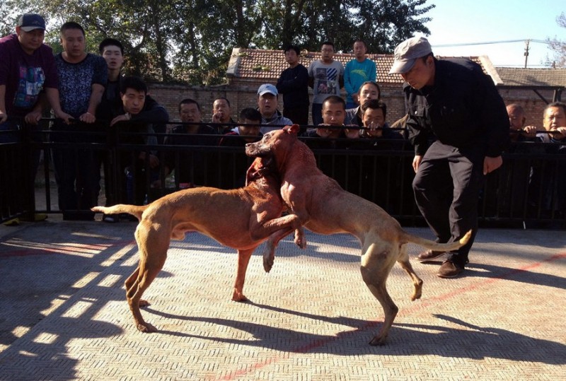 记者调查得知,斗狗赌博圈在北京悄然兴起。斗狗者们以每年超过万元的投入饲养、训练,跑步机、轮胎成为训练比特犬的工具。斗狗赌局上亦有千术,部分狗主人在赛前给狗注射兴奋剂,或在狗身上涂抹麻醉药。10月10日,记者暗访了北京郊区的一家斗狗场,半天时间,斗狗赌资总计约为20万元。 CFP供图 谢绝转载