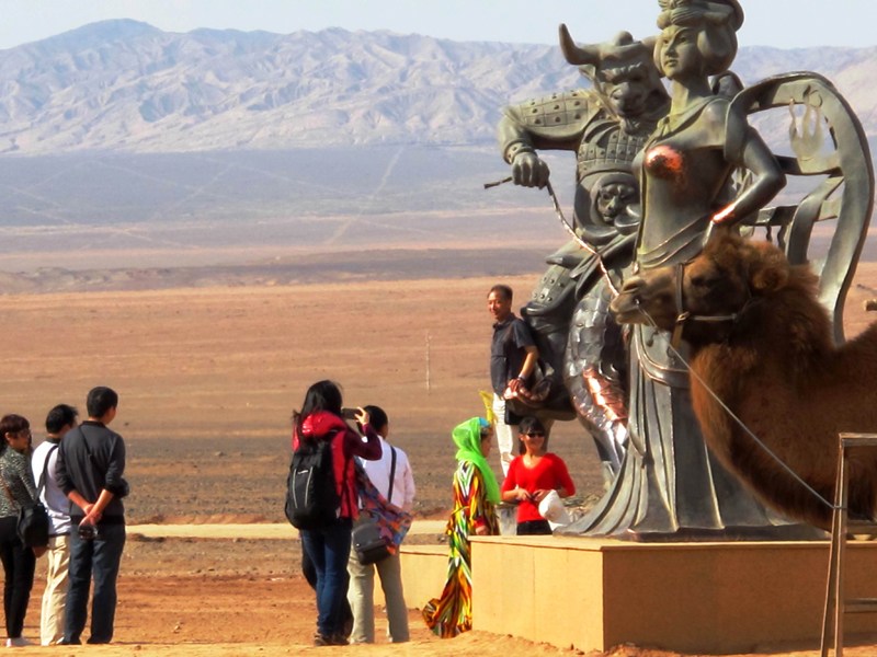 吐鲁番景区铜像被摸太多裸露失色