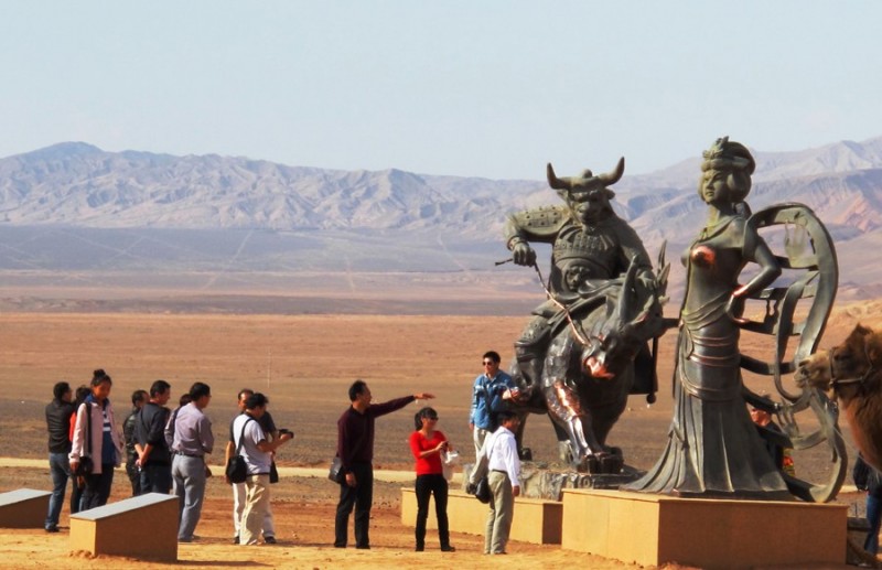 10月20日,新疆吐鲁番火焰山风景区,由于游客参观游览时的举止不雅,攀爬铁扇公主和牛魔王等雕塑造型摆酷照相,导致铁扇公主“敏感”部位“裸露”,牛魔王坐下骑的牛鼻子等处“失色