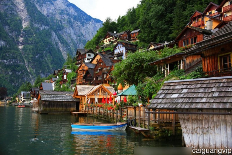哈尔施塔特镇是奥地利上奥地利州萨尔茨卡默古特地区的一个村庄,位于哈尔施塔特湖湖畔。这座在险峻的斜坡和宝石般翡翠的湖泊间伫立的湖畔小镇,到处可见童话般清幽美好的住宅。海拔3000多米的山峰和清澈透底的湖泊,把这个地方变成了人间天堂。住在临湖的庭院旅馆,推窗见湖,遥望湖上泛起清烟,仿佛来到人间仙境,因此这里又被称作“世界上最美的小镇”。