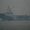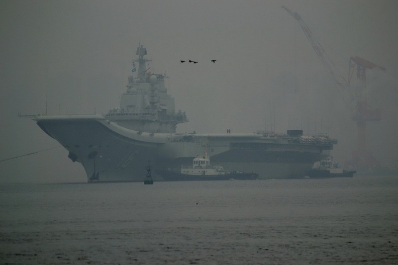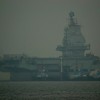 2月26日9点半左右,大连港口大雾弥漫,中国首艘航母“辽宁舰”离开港口。据悉,这次航母将要去往青岛胶东航母基地。图为“辽宁舰”离开港口