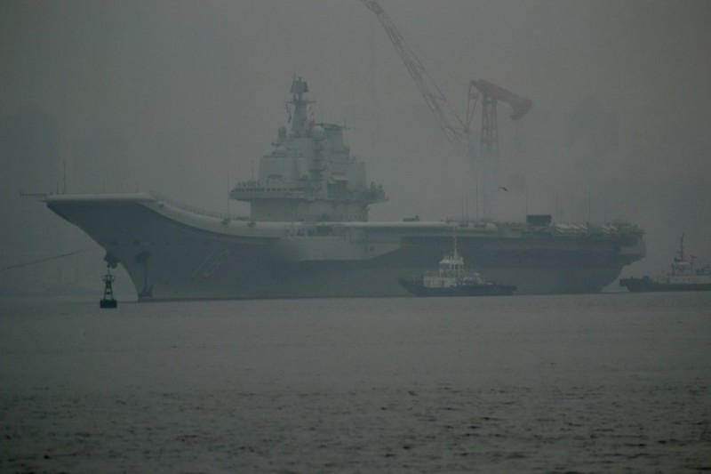 2月26日9点半左右,大连港口大雾弥漫,中国首艘航母“辽宁舰”离开港口。据悉,这次航母将要去往青岛胶东航母基地。图为“辽宁舰”离开港口