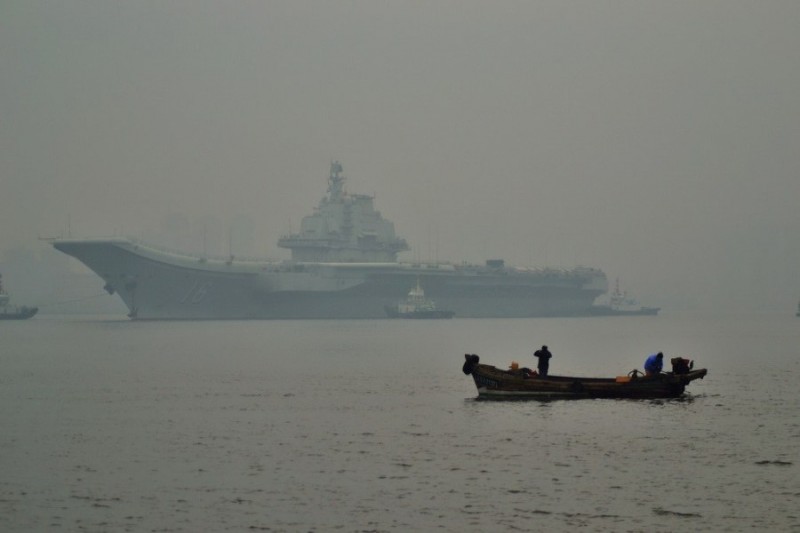 2月26日9点半左右,大连港口大雾弥漫,中国首艘航母“辽宁舰”离开港口。据悉,这次航母将要去往青岛胶东航母基地。图为“辽宁舰”离开港口