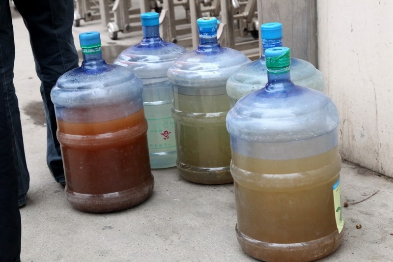 图为村民们拿来的污染水样品。子强/东方IC