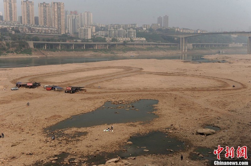 嘉陵江重庆段水位持续下降 河床成娱乐场