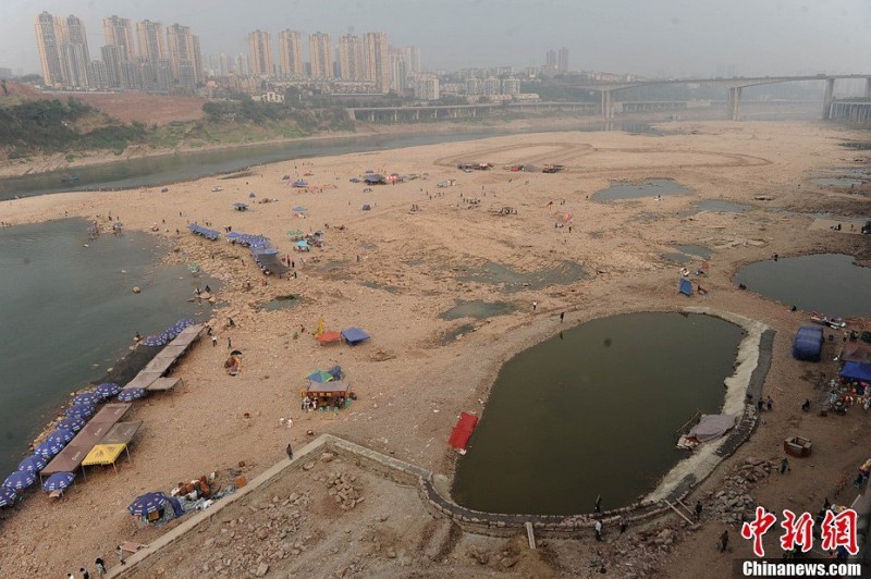 嘉陵江重庆段水位持续下降 河床成娱乐场