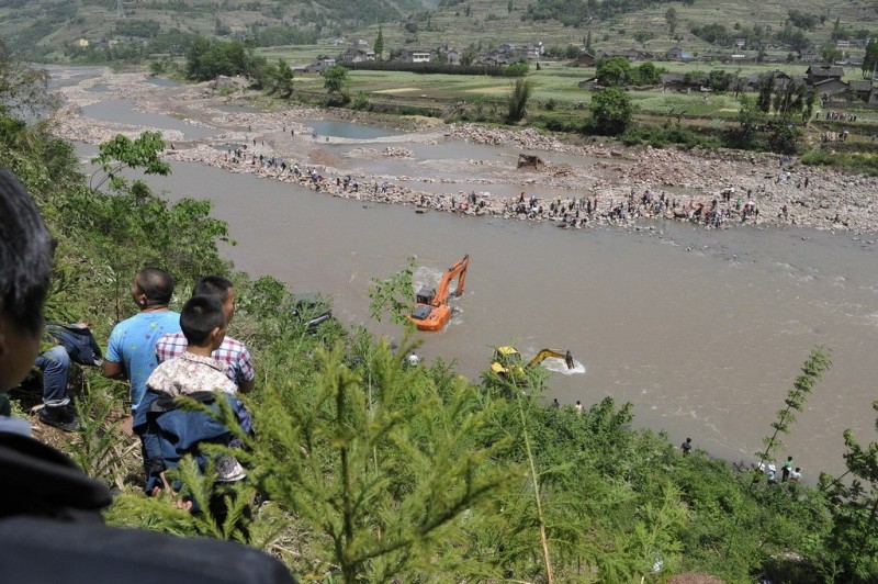 成都军区一救灾车辆赴灾区途中坠崖