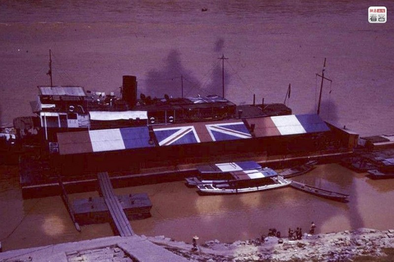 1938年10月4日起,日本正式轰炸重庆市区,从1939年1月开始,日机空袭升级,轰炸规模不断扩大,不少客货船只也未能幸免。图为不少欧洲商船顶部被涂上各国的国旗图案,防止日军误炸。LIFE