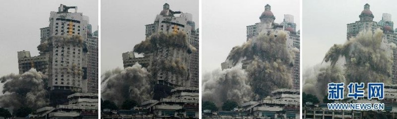 两幢高楼3秒内相继倒塌