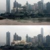 该负责人表示,两栋大楼采用的是定向瞬间爆破的模式,为了不对周围建筑物产生影响,两栋大楼是定向垂直下倒,并往设计方向倾斜。其中,重庆港客运大楼爆破时是往陕西路这一方向倾斜,而三峡宾馆爆破时则是往朝天门广场这一方向倾斜,正好是相向方向。