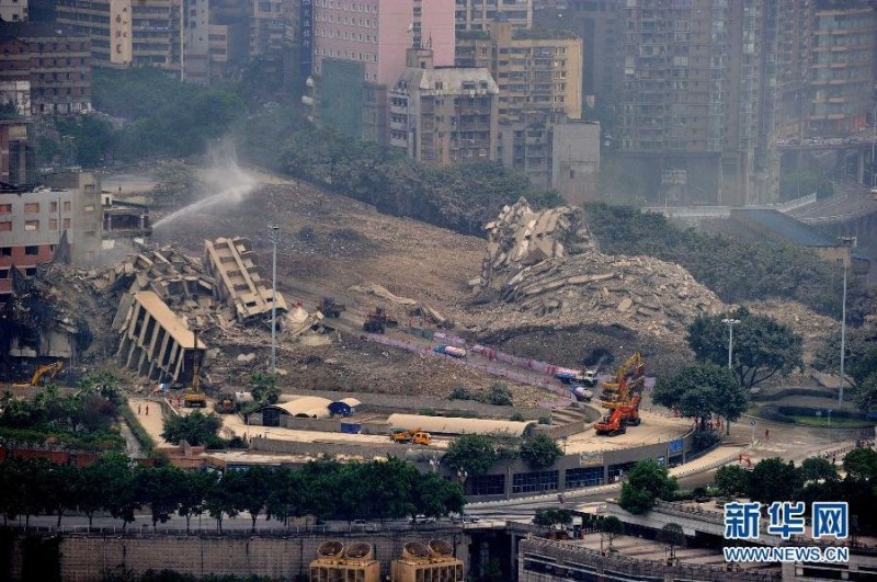 “这次爆破相当成功!”据负责此次爆破的重庆乾源爆破公司相关负责人介绍,虽然之前公司顺利完成多项高楼爆破项目,但均无法与此次爆破难度相比。楼层高、爆破体量大,加之爆破地点周边有高楼,人流量、车流量都很大,给爆破带来了较大难度。
